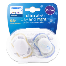 AVENT ULTRA AIR 0-6 MOIS DAY AND NIGHT LOT DE 2 SUCETTES - Couleur Garcon est disponible en vente en ligne à prix pas cher sur Beautyshop.