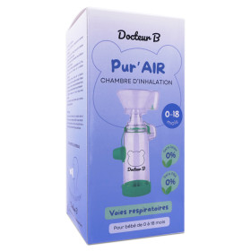 CHAMBRE D'INHALATION PUR'AIR 0-18 MOIS DOCTEUR B en vente en ligne sur le site de votre parapharmacie à prix pas cher, est l'accessoire idéal pour les tout-petits afin de faciliter leur confort respiratoire.