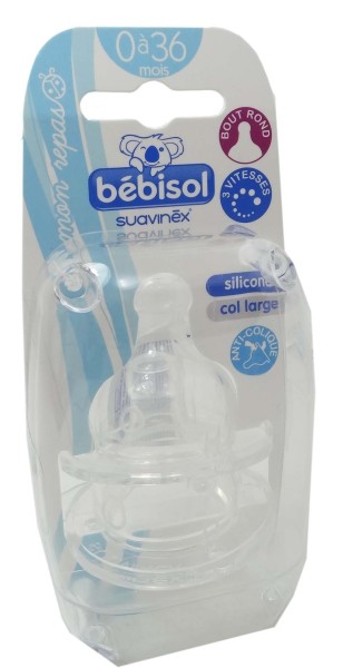La tétine en silicone est douce pour le bébé qui retrouvera la douceur de la peau de la maman. A débit variable (3 vitesses), elle permet d’adapter l’écoulement du liquide selon l’épaisseur et l’âge du bébé. Sa matière en silicone permet d'être résistante lors de haute température ainsi qu'aux mordillements des petits. Elle permet également d'être résistante dans le temps et de minimiser les risques d'allergies. Grâce à sa valve, l’air reste dans le biberon et ne va pas dans le ventre de l’enfant, ainsi le bébé passe des nuits tranquilles sans avoir de coliques. S'adapte aux biberons BEBISOL à col large.
