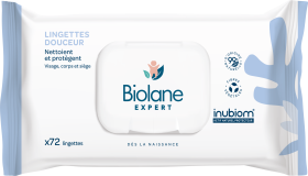 BIOLANE des laboratoires Biopha situé en France, est une marque de soins spécialement formulés pour prendre soin de la peau délicate de bébé grâce à des formules à base d’ingrédients d’origine naturelle (95% en moyenne). Les Lingettes Douceur sans rinçage en format pratique pour un transport facile, sont spécialement formulées pour la toilette et le soin des bébés. A la formule haute tolérance cutanée et oculaire, et hypoallergéniques, elles respectent la peau délicate des bébés et ne piquent pas les yeux. Enrichies en Inubiom, qui est un sucre spécifique d’origine végétale issu de chicorée aux propriétés protectrices, elles vont renforcer la peau pour rééquilibrer le microbiote cutané et la protéger de la sècheresse. Leurs vertus nourrissantes protectrices hydratantes et apaisantes adouciront la peau de bébé pour qu’elle retrouve douceur, souplesse et confort. Les lingettes en fibre biodégradable Tencel : fibre écologique issue de pulpes de bois, sont non traitées pour une utilisation très douce et le respect de la peau de bébé. Testé sous contrôle dermatologique. Hypoallergénique. Ne pique pas les yeux