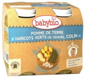 Les Petits pots Menu du jour Pomme de terre-Haricots verts-Colin de BABYBIO, les premiers petits pots pour faire découvrir aux tout-petits de nouvelles saveurs lors de la diversification alimentaire. A partir de 6 mois