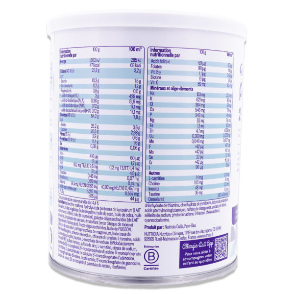Le laboratoire GALLIA propose cette denrée alimentaire destinée à des fins médicales spéciales pour les bébés de plus de 6 mois présentant une allergie aux protéines de lait de vache (APLV). Formulé avec un hydrolysat poussé de protéines de lactosérum, ce produit inclut un complexe Syneo composé de bifidobacterium breve M-16V et de FOS/GOS, qui soutient l'équilibre de la flore intestinale. Les vitamines et minéraux présents contribuent au fonctionnement du système immunitaire, tandis que les acides gras oméga-3 participent au développement cérébral. Contenant du lactose, ce lait en poudre est conçu pour accompagner la croissance des tout-petits. Offrez à votre bébé un soutien nutritionnel adapté et sécurisé dès maintenant.