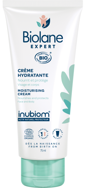 BIOLANE des laboratoires Biopha situé en France, est une marque de soins spécialement formulés pour prendre soin de la peau délicate de bébé grâce à des formules à base d’ingrédients d’origine naturelle (95% en moyenne). La Crème Hydratante est un soin douceur au doux parfum délicat, pour protéger, nourrir, hydrater et apaiser la peau des tout-petits. Cette crème est enrichie en Inubiom. L’Inubiom qui est un sucre spécifique d’origine végétale issu de chicorée aux propriétés protectrices, va renforcer la peau pour rééquilibrer le microbiote cutané et la protéger de la sècheresse. Le beurre de karités aux vertus nourrissantes hydratantes et apaisantes adouciront la peau de bébé pour qu’elle retrouve douceur, souplesse et confort. Sans parabènes, ni phenoxyethanol, ni phtalates, ni MIT, ni alcool. Testé sous contrôle pédiatrique.
