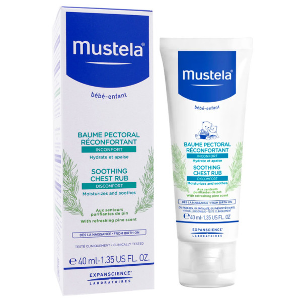 MUSTELA BAUME PECTORAL RECONFORTANT 40ML est en vente en ligne sur le site de votre parapharmacie à prix pas cher, offrant un baume réconfortant pour détendre les tout-petits dès la naissance, avant le coucher.