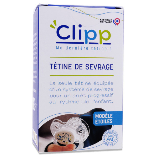 CLIPP TETINE DE SEVRAGE MODELE ETOILES est en vente en ligne sur le site de votre parapharmacie à prix pas cher, un accessoire de soin conçu pour accompagner le sevrage des tout-petits.