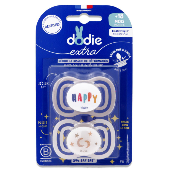 DODIE EXTRA 2 SUCETTES ANATOMIQUES JOUR & NUIT 18 MOIS+ est en vente en ligne sur le site de votre parapharmacie à prix pas cher, offrant un confort optimal pour les bébés dès 18 mois.