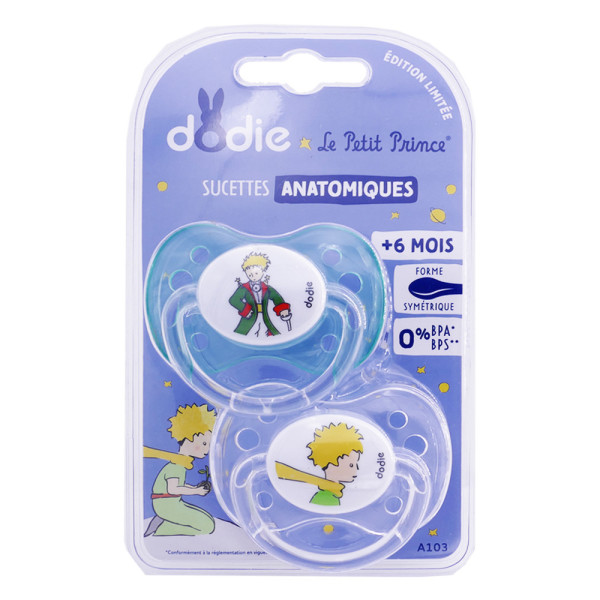 Sucettes anatomiques Le Petit Prince +6 mois, lot de 2, en vente en ligne sur le site de votre parapharmacie à prix pas cher. Découvrez les sucettes Dodie, conçues pour le confort et le bien-être de votre bébé.