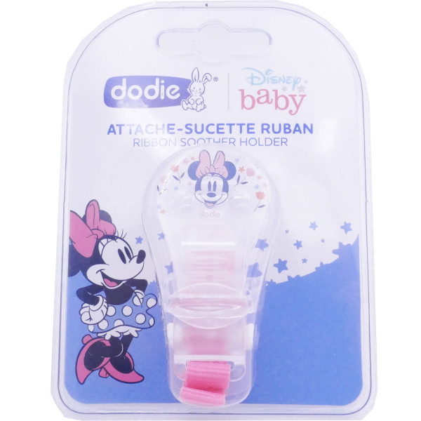 Les accessoires Dodie sont développés par des experts pour répondre de la meilleure façon aux besoins des bébés et faciliter la vie des parents. Le clip en silicone ultra-souple s’accroche directement aux vêtements de bébé pour résoudre facilement le problème des sucettes qui tombent ou qui se perdent. Son attache universelle très simple s’adapte à toutes les sucettes (avec ou sans anneau), et la longueur du ruban résistant avec sa pince à l’effigie du personnage « Minnie » est spécialement étudié pour offrir une sécurité optimale.