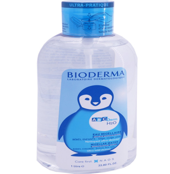 EAU MICELLAIRE H2O ABCDerm pas cher des laboratoires BIODERMA, le soin douceur dans votre parapharmacie en ligne à prix pas cher, pour nettoyer les peaux fragiles des bébés et des enfants (sauf prématurés).