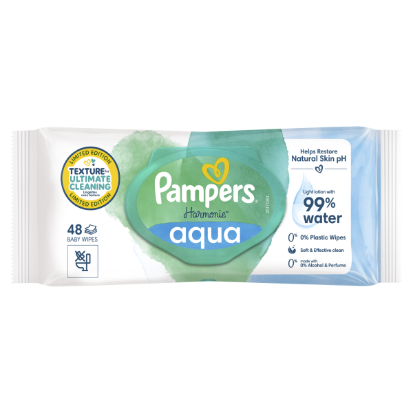 Mode d'emploi : Utilisez les lingettes Pampers Harmonie Aqua pour nettoyer en douceur la peau de votre bébé. Ne pas rincer. Conservez à température ambiante.Mentions légales : Ne pas utiliser sur une peau irritée. Tenir hors de portée des enfants. Vérifiez la date d'expiration.