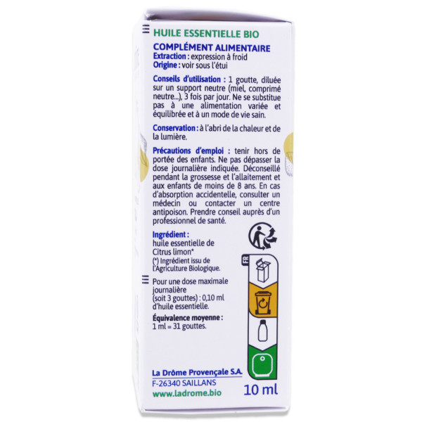 LADROME HUILE ESSENTIELLE BIO CITRON 10ML est disponible en vente en ligne à prix pas cher sur Beautyshop.