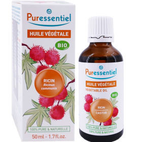 L’huile végétale Bio de Ricin de PURESSENTIEL pas cher, une huile végétale 100% naturelle, à utiliser en soin pour la peau et/ou les cheveux, dans votre parapharmacie en ligne à prix pas cher.