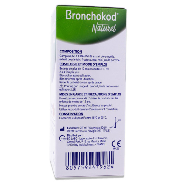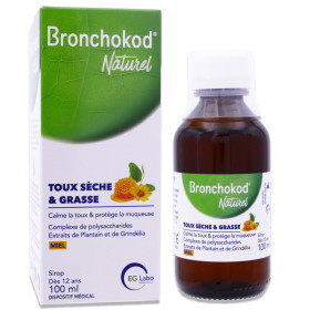 BRONCHOKOD NATUREL TOUX SECHE ET GRASSE GOUT MIEL 100ML est disponible en vente en ligne à prix pas cher sur Beautyshop.