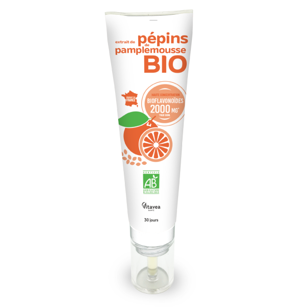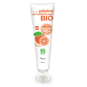 L’extrait de pépins de pamplemousse est un complément alimentaire sous forme de solution très concentrée, à diluer. Elle renferme de précieux bioflavonoïdes issus du pamplemousse.