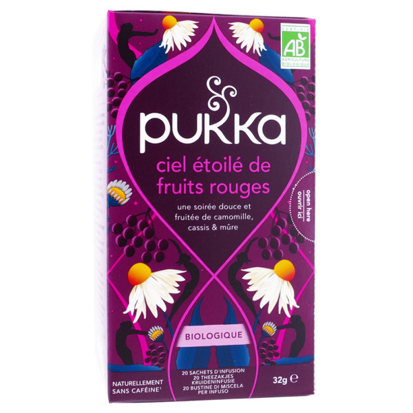 PUKKA CIEL ETOILE DE FRUITS ROUGES 20 SACHETS est en vente en ligne sur le site de votre parapharmacie à prix pas cher, une infusion de fruits rouges pensée pour une pause gourmande au quotidien.