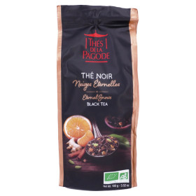 THES DE LA PAGODE THE NOIR NEIGES ETERNELLES 100G est en vente en ligne sur le site de votre parapharmacie à prix pas cher, offrant une expérience sensorielle unique grâce à ses arômes épicés et agrumés, parfait pour les amateurs de thé noir recherchant un moment de détente.