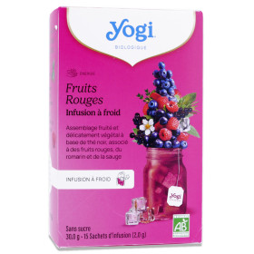 YOGI INFUSION A FROID FRUITS ROUGES BIO 15 SACHETS est en vente en ligne sur le site de votre parapharmacie à prix pas cher, une infusion à froid bio pensée pour une pause rafraîchissante au quotidien, idéale pour les amateurs de boissons fruitées.