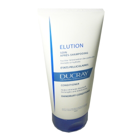 La gamme Elution des laboratoires DUCRAY est composée de shampooings et lotions pour apaiser les cuirs chevelus sensibles ayant subi des traitements antipelliculaires. Cet après-shampoing aux actifs apaisants est spécialement conçu pour rééquilibrer le cuir chevelu afin d’éliminer les pellicules et apporter brillance douceur et un coiffage facile. Sa composition associe de la vitamine B5, du piroctone olamine, du gluconate de zinc et glycine aux propriétés apaisantes, astringentes et équilibrante, à des agents démêlants pour faciliter le coiffage des cheveux. Les cheveux sont soyeux, doux et facile à coiffer, le cuir chevelu est apaisé et assaini.
