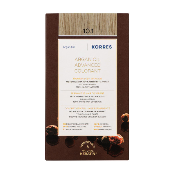 Coloration Capillaire Permanente pas cher de KORRES, une couleur intense et protectrice longue durée dans votre parapharmacie en ligne à prix pas cher, pour des cheveux doux et lumineux. Blond Platine Cendré 10.1