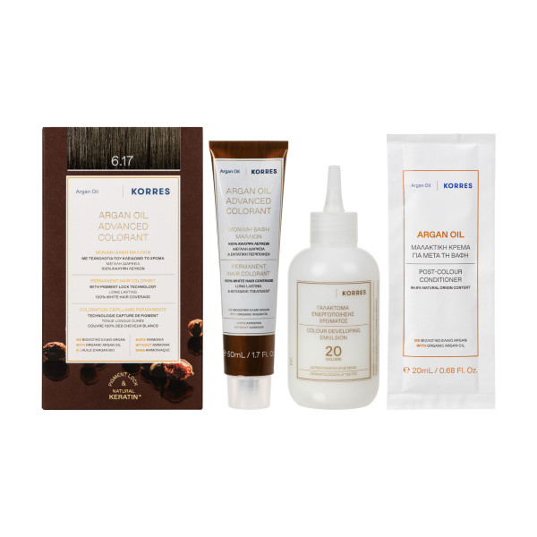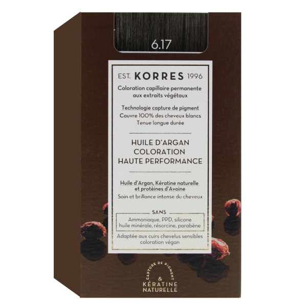 KORRES KIT COLOR PERMANENTE HUILE ARGAN 6.17 est en vente en ligne sur le site de votre parapharmacie à prix pas cher, offrant une solution de coloration permanente pour cheveux, spécialement formulée pour un résultat naturel et éclatant.