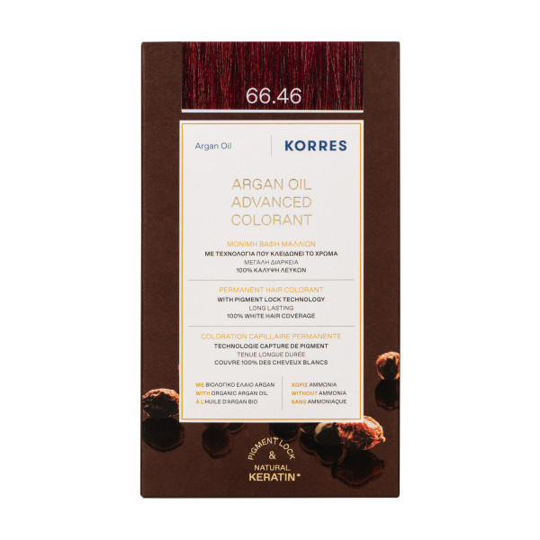 Coloration Capillaire Permanente pas cher de KORRES, une couleur intense et protectrice longue durée dans votre parapharmacie en ligne à prix pas cher, pour des cheveux doux et lumineux. Foncé cuivré violine intense 66.46