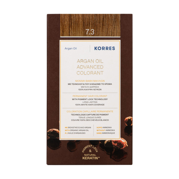 Coloration Capillaire Permanente pas cher de KORRES, une couleur intense et protectrice longue durée dans votre parapharmacie en ligne à prix pas cher, pour des cheveux doux et lumineux. Blond Doré 7.3