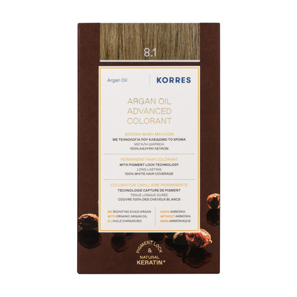 Coloration Capillaire Permanente pas cher de KORRES, une couleur intense et protectrice longue durée dans votre parapharmacie en ligne à prix pas cher, pour des cheveux doux et lumineux. Blond Clair Cendré 8.1