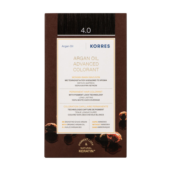 Coloration Capillaire Permanente pas cher de KORRES, une couleur intense et protectrice longue durée dans votre parapharmacie en ligne à prix pas cher, pour des cheveux doux et lumineux. Châtain 4.0