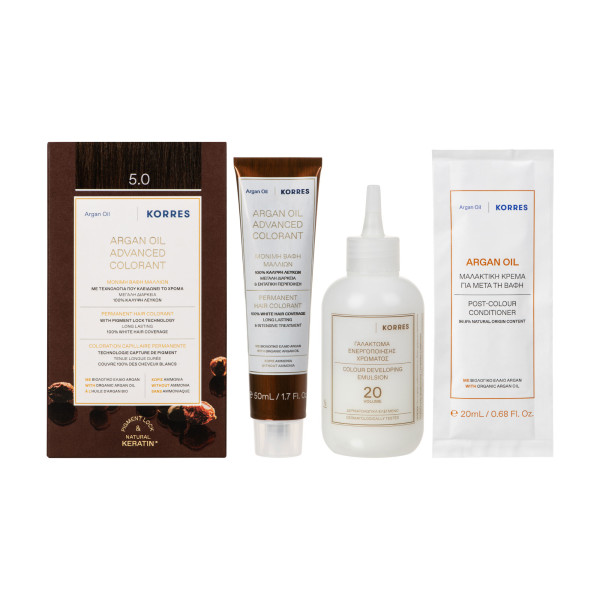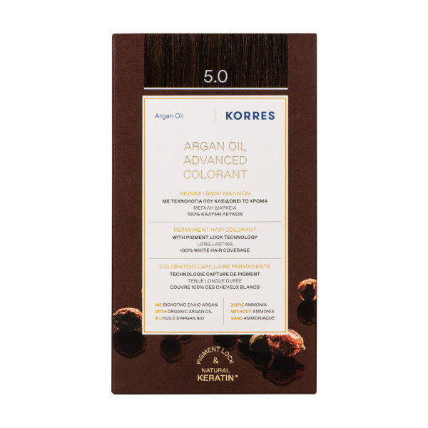 Coloration Capillaire Permanente pas cher de KORRES, une couleur intense et protectrice longue durée dans votre parapharmacie en ligne à prix pas cher, pour des cheveux doux et lumineux. Châtain Clair 5.0