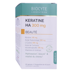 Prenez soin de vos cheveux de l'intérieur avec le BIOCYTE KERATINE HA 300MG BEAUTE CHEVEUX 60 GELULES et retrouvez une chevelure éclatante de vitalité.