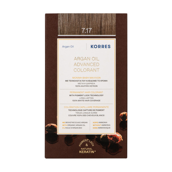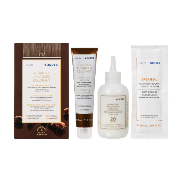 La Coloration Capillaire Permanente de KORRES assure une couverture intense des cheveux et une brillance longue durée. Formulée sans ammoniaque, sans résorcine, sans p-phénylènediamine (PPD) et sans paraben, la coloration couvre 100% des cheveux blancs tout en respectant la nature des cheveux. Chaque coloration contient un extrait d’avoine qui protège la fibre capillaire et forme un bouclier durable pour préserver la couleur et l’hydratation du cheveu. La technologie « capture de pigment » va permettre de fixer la couleur au cœur de la fibre capillaire par un mécanisme d’oxydation contrôlé ; elle va encapsuler les micro-colorants qui vont se déposer au cœur de la fibre capillaire afin de former des macromolécules de couleur et ainsi renforcer l’éclat de la couleur. L’huile d’argan et la kératine naturelle complètent la formule pour réhydrater le cheveu et renforcer la fibre capillaire afin de protéger des agressions quotidiennes. La chevelure est douce, brillante, facile à coiffer et d’une couleur éclatante. Testé sous contrôle dermatologique Convient aux vegans. Pas de test sur animaux.