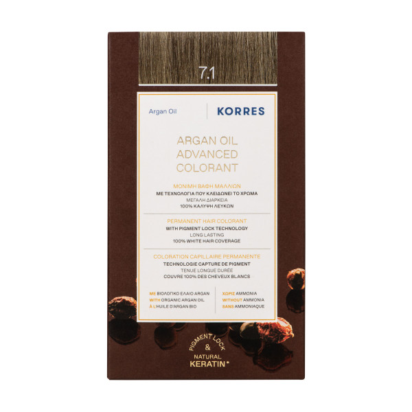 Coloration Capillaire Permanente pas cher de KORRES, une couleur intense et protectrice longue durée dans votre parapharmacie en ligne à prix pas cher, pour des cheveux doux et lumineux. Blond Cendré 7.1