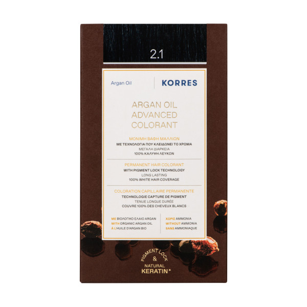 Coloration Capillaire Permanente pas cher de KORRES, une couleur intense et protectrice longue durée dans votre parapharmacie en ligne à prix pas cher, pour des cheveux doux et lumineux. Noir Bleuté 2.1