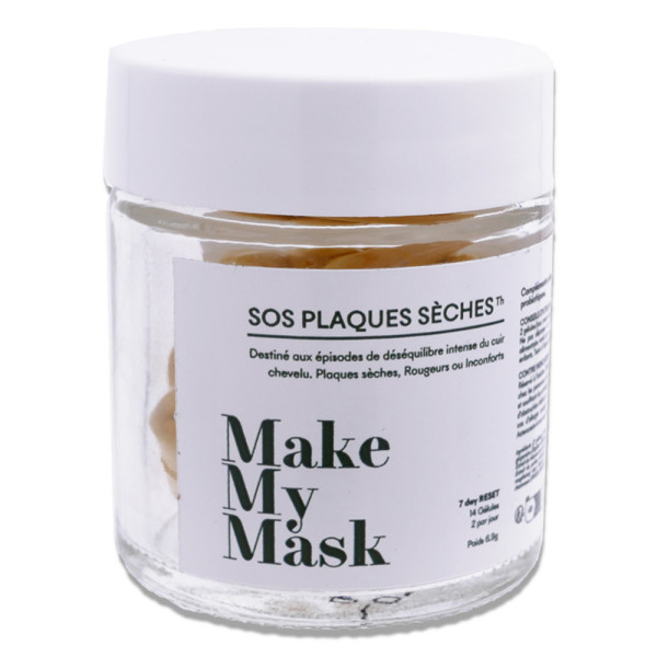 MAKE MY MASK SOS PLAQUES SECHES gélules est en vente en ligne sur le site de votre parapharmacie à prix pas cher, conçu pour répondre aux besoins des peaux sujettes aux plaques sèches.