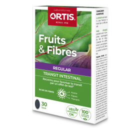 Fruits & Fibres Regular d’ORTIS sont des cubes à avaler composés de figues, tamarin, acacia et rhubarbe, pour vous aider à combattre en douceur les troubles intestinaux. Ces ingrédients ont soigneusement été sélectionnés pour leur capacité à équilibrer efficacement et en douceur le transit. La rhubarbe stimule les contractions du tube intestinal, le tamarin réhydrate grâce à son action osmotique et la figue déclenche le reflexe intestinal permettant ainsi de retrouver un transit régulier. Sans effet indésirable, sans accoutumance.