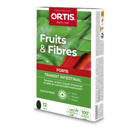FRUITS & FIBRES Forte Transit Intestinal Action Rapide d’ORTIS pas cher, des comprimés riches en fibres alimentaires dans votre parapharmacie en ligne à prix pas cher, avec de la rhubarbe, du Carvi, des figues et du tamarin.