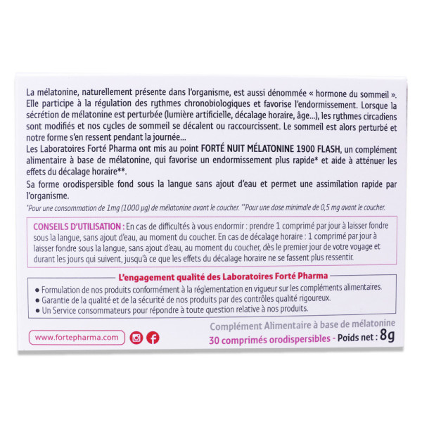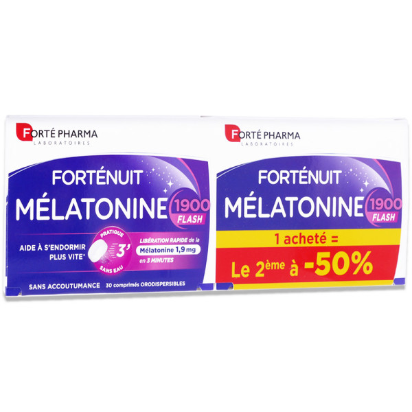 FORTEPHARMA FORTENUIT MELATONINE 1900 FLASH 2X30 COMPRIMES est disponible en vente en ligne à prix pas cher sur Beautyshop.