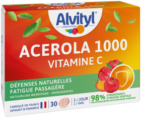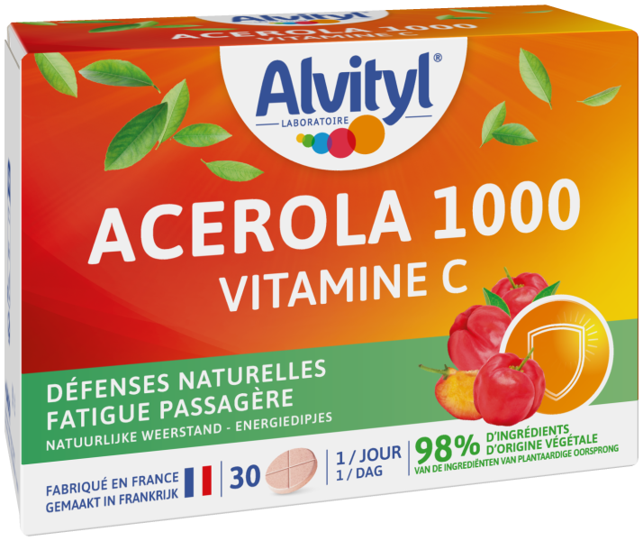 Acérola 1000 + Vitamine C GO VITAL, est un complément alimentaire sous forme de comprimés à croquer, à base d’extrait d’acérola, également appelée cerise du Brésil. Le fruit de l'acérola est naturellement riche en vitamine C.