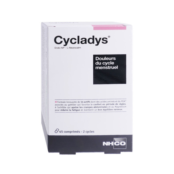 NHCO CYCLADYS DOULEURS CYCLE MENSTRUEL 45 COMPRIMES est disponible en vente en ligne sur le site de votre parapharmacie.
