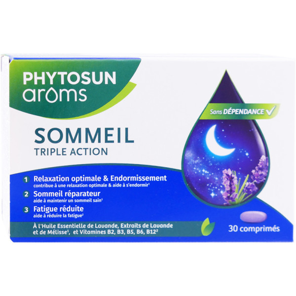 PHYTOSUN AROMS SOMMEIL TRIPLE ACTION 30 COMPRIMES est disponible en vente en ligne à prix pas cher.