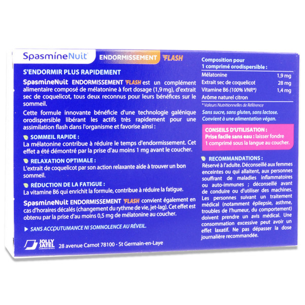 SPASMINE NUIT ENDORMISSEMENT FLASH 20 COMPRIMES ORODISPERSIBLES est disponible en vente en ligne à prix pas cher sur Beautyshop.