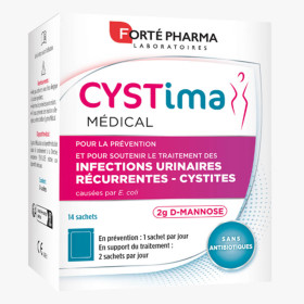 La gamme santé de Forte Pharma est composée de compléments alimentaires capables de combler les carences de l’organisme souvent liées à une alimentation déséquilibrée et un mode de vie sédentaire, grâce un apport de nutriments choisis pour maintenir et renforcer son capital santé. CYSTIMA Médical de FORTE PHARMA est un dispositif médical conditionné sous forme de sachet à diluer, composé de D-Mannose aux vertus bénéfiques dans les cas de cystite. Au niveau urinaire, certaines bactéries sécrètent des adhésines leur permettant de s’accrocher aux parois de la vessie. Le D-Mannose est présent naturellement en infime quantité dans la vessie. Cette molécule aux propriétés anti-microbiennes permet de limiter la fixation de ces bactéries à la surface de l'épithélium de la paroi vésicale et d’éliminer naturellement par le flux urinaire celles déjà présentes. Une cure de CYSTIMA Médical limite la prolifération des bactéries et favorise leur élimination.