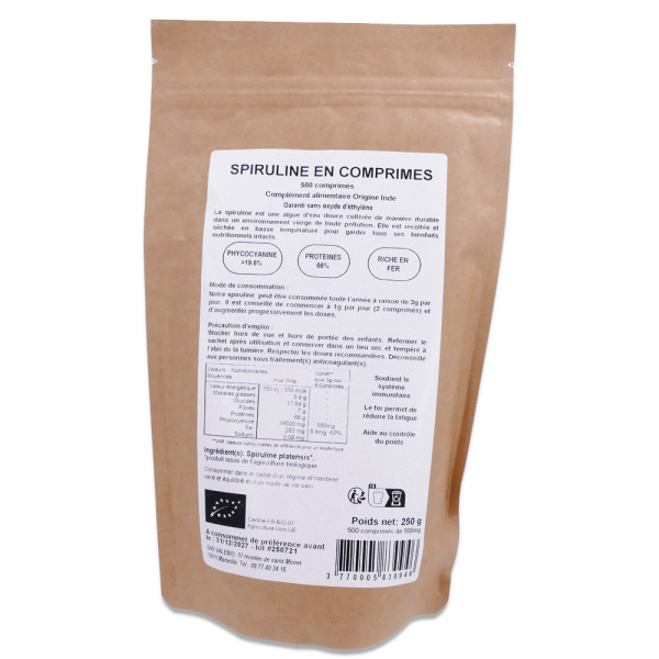 Complément alimentaire à base de spiruline bio. Certifiée 100% bio et naturelle par Ecocert, idéale pour les gluten free et vegan.