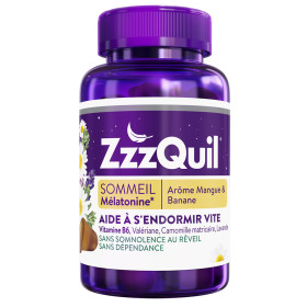 ZZZQUIL Sommeil pas cher le complément alimentaire naturel en gommes fruitées à mâcher, composé d’extraits de plantes, vitamine et extraits de plantes, à prendre lors de difficultés d’endormissement, dans votre parapharmacie en ligne pas cher. Mangue Banane