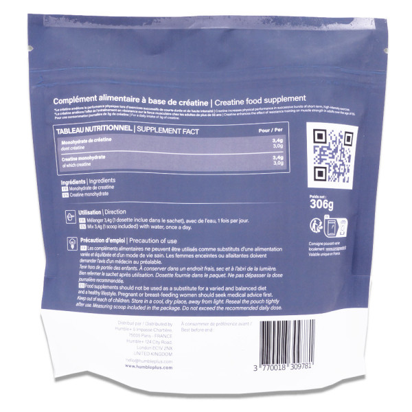 Ce complément alimentaire fait partie du laboratoire innovant de HUMBLE, reconnu pour sa qualité et son engagement envers le bien-être. La créatine monohydrate pure, son ingrédient principal, est connue pour sa capacité à soutenir la fonction musculaire et à contribuer à l'augmentation des performances physiques lors d'exercices successifs de courte durée et de haute intensité. Avec son goût neutre, elle s'intègre facilement à votre routine quotidienne sans altérer la saveur de vos boissons préférées. Profitez des avantages de la créatine pour accompagner vos objectifs de performance et de bien-être. N'attendez plus pour découvrir les avantages de ce produit exceptionnel et intégrer HUMBLE CREATINE+ AGE WELL à votre quotidien.