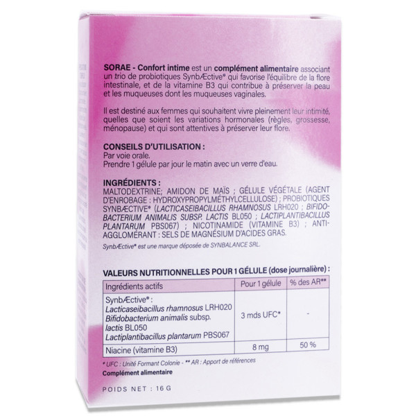 SORAE CONFORT INTIME 30 GELULES est disponible en vente en ligne à prix pas cher sur Beautyshop.