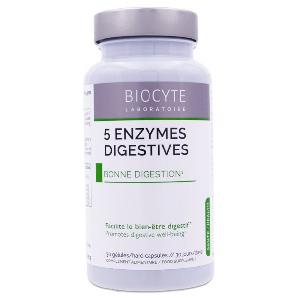 BIOCYTE 5 ENZYMES DIGESTIVES 30 GELULES est disponible en vente en ligne à prix pas cher sur Beautyshop.