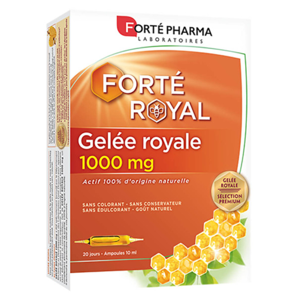 Gelée Royale 1000 mg de Forté Pharma, le complément alimentaire en ampoules à base d’ingrédient issu de la ruche pour dans votre parapharmacie en ligne à prix pas cher.