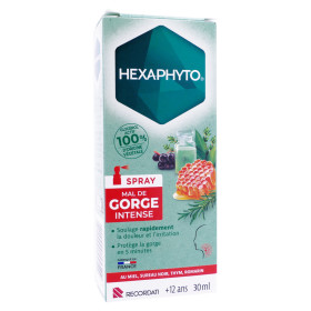 HEXAPHYTO SPRAY MAL DE GORGE INTENSE 30ML est en vente en ligne sur le site de votre parapharmacie à prix pas cher, offrant une solution efficace pour apaiser les irritations. Ce dispositif médical est spécialement conçu pour calmer intensément les sensations d'inconfort liées à la gorge.