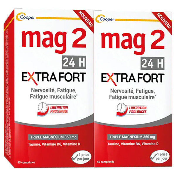 MAG 2 24H EXTRA FORT 2 X 45 COMPRIMES est un complément alimentaire en vente en ligne sur le site de votre parapharmacie à prix pas cher.